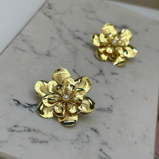 AgotadoAretes Flor Perla Chapa